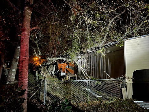 At approximately 6:47 PM on Sunday, January 2nd, 2022 we received a call to respond to Susan St. for a tree that fell on a home. The tree also took down power lines with it. Units on scene are awaiting Cleco to arrive to safely assist with removing the tree. Fortunately, no one was injured. Strong winds likely contributed to knocking the tree over.